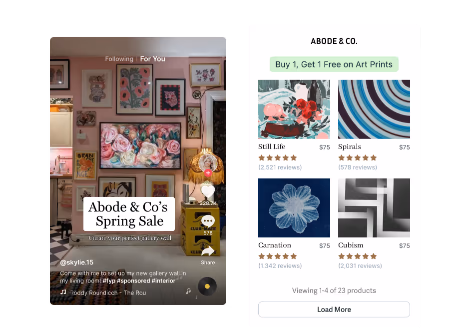 - CreatorStores™: Aspire’s CreatorStores let affiliates curate products, share exclusive discounts, and deliver bespoke shopping experiences to their audiences — driving higher conversion rates, boosting AOV, and capturing valuable first-party data for retargeting. These personalized, creator-led storefronts are hosted directly on your Shopify site, allowing for seamless integration.