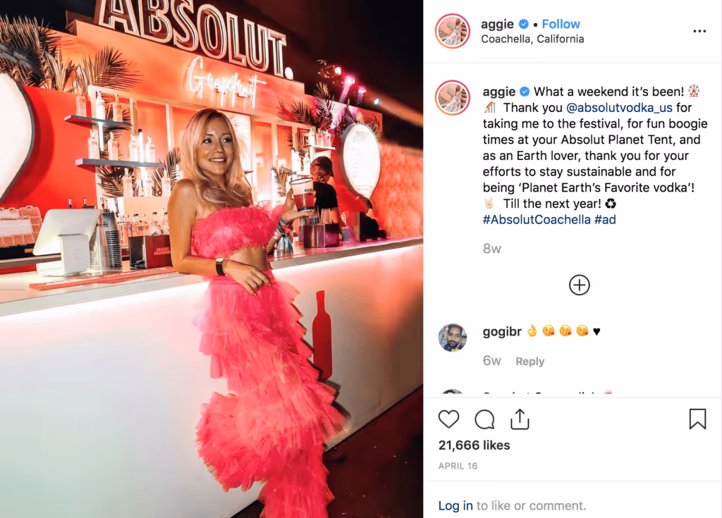 See how Absolut Vodka was able to make a splash at Coachella this year by flying out a handful of influencers to the festival. Of course, they were able to do so because they worked with influencers who fit naturally with the brand.