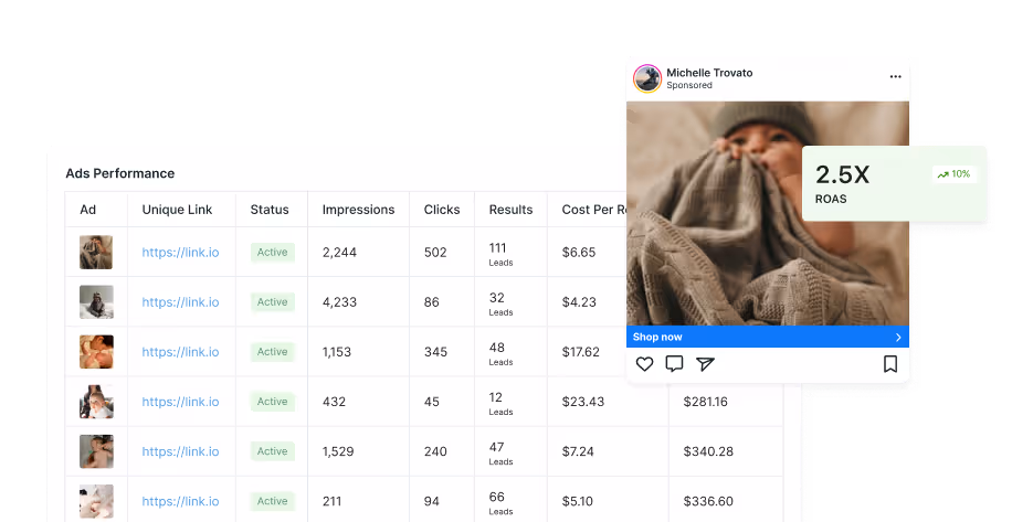 View paid ad metrics like impressions, clicks, and conversions alongside organic post metrics. Easily compare results across creators and campaigns to double down on what’s working.