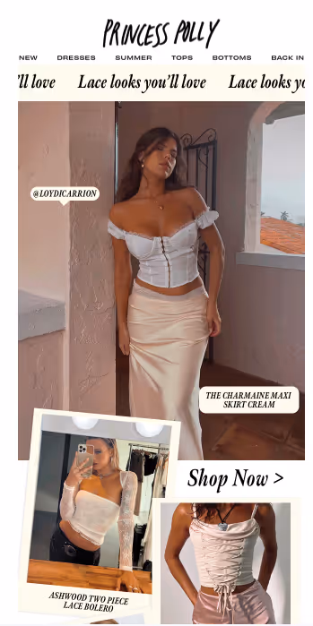 - UGC everywhere: Understanding the power of user-generated content (UGC), Princess Polly repurposes content from their customers and creators across various channels, including their organic social media accounts, website, and email marketing. By leveraging UGC, Princess Polly creates a sense of FOMO, driving those considering buying from the retailer to do so right away.