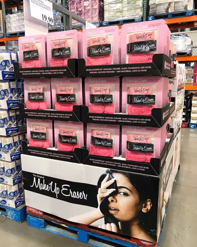 Beauty brand MakeUp Eraser uses influencer-generated content (IGC) to reinforce its brand wherever it’s carried by retailers like Nordstrom and Costco. According to the MakeUp Eraser team, nothing breathes life into warehouse shelving like a pop-up featuring a real person’s story.