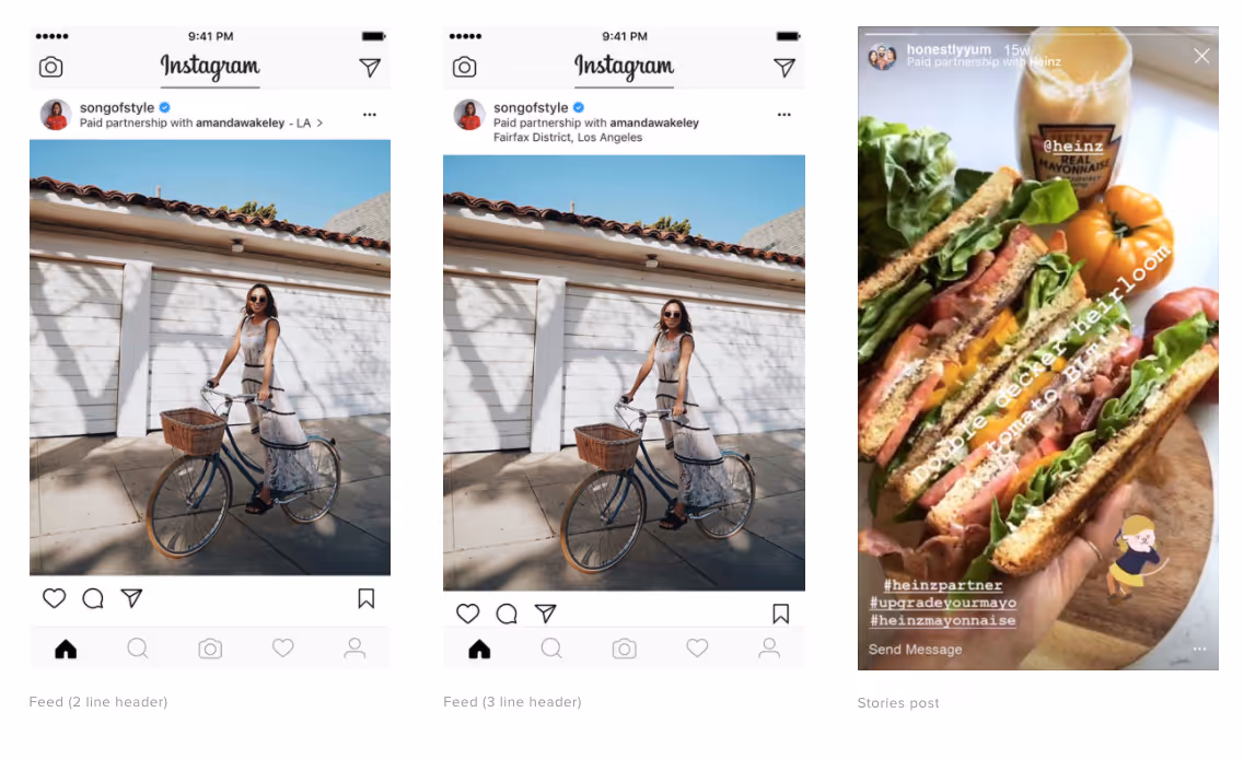 On Instagram, you may have seen these posts tagged at the top as “Paid partnership with [Brand].” On Facebook, you may have seen them as posted by “[Creator] with [Brand].”