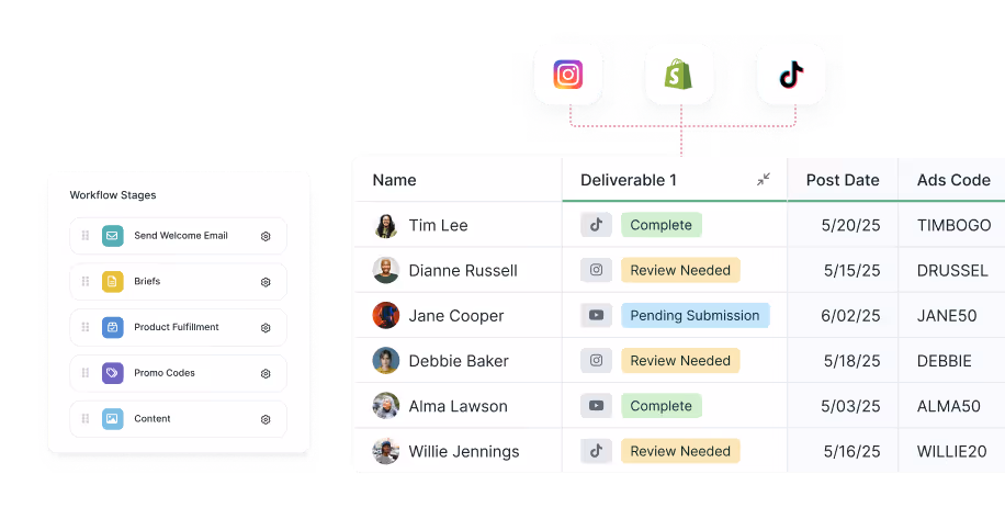 - Leverage all your data at your fingertips: Quickly sort, filter, and analyze key metrics to identify top-performing creators, track progress, and optimize campaigns in real time.