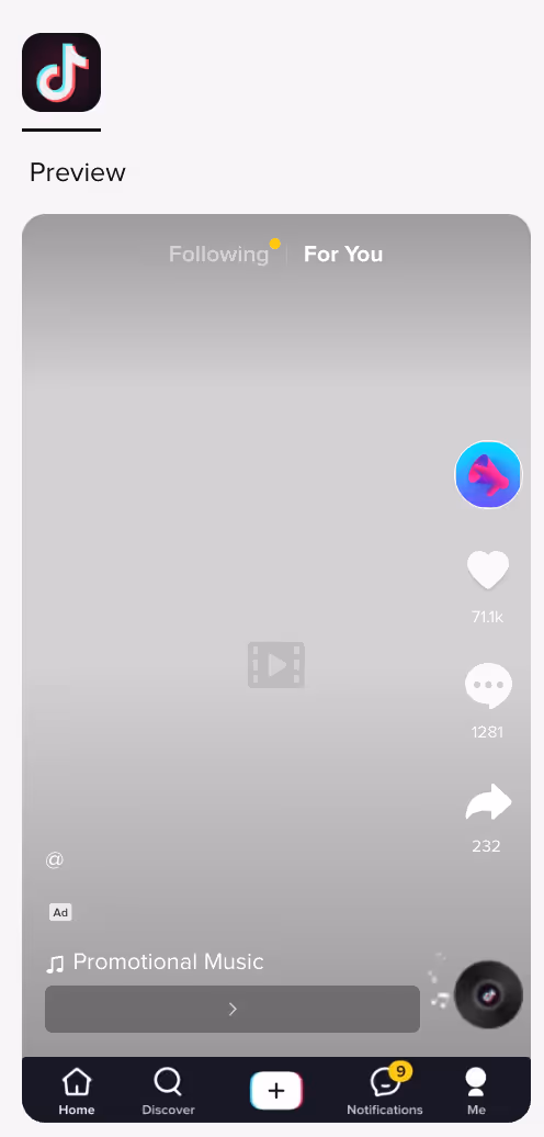 - TikTok placement: Your In-Feed ads will appear on users’ For You pages.