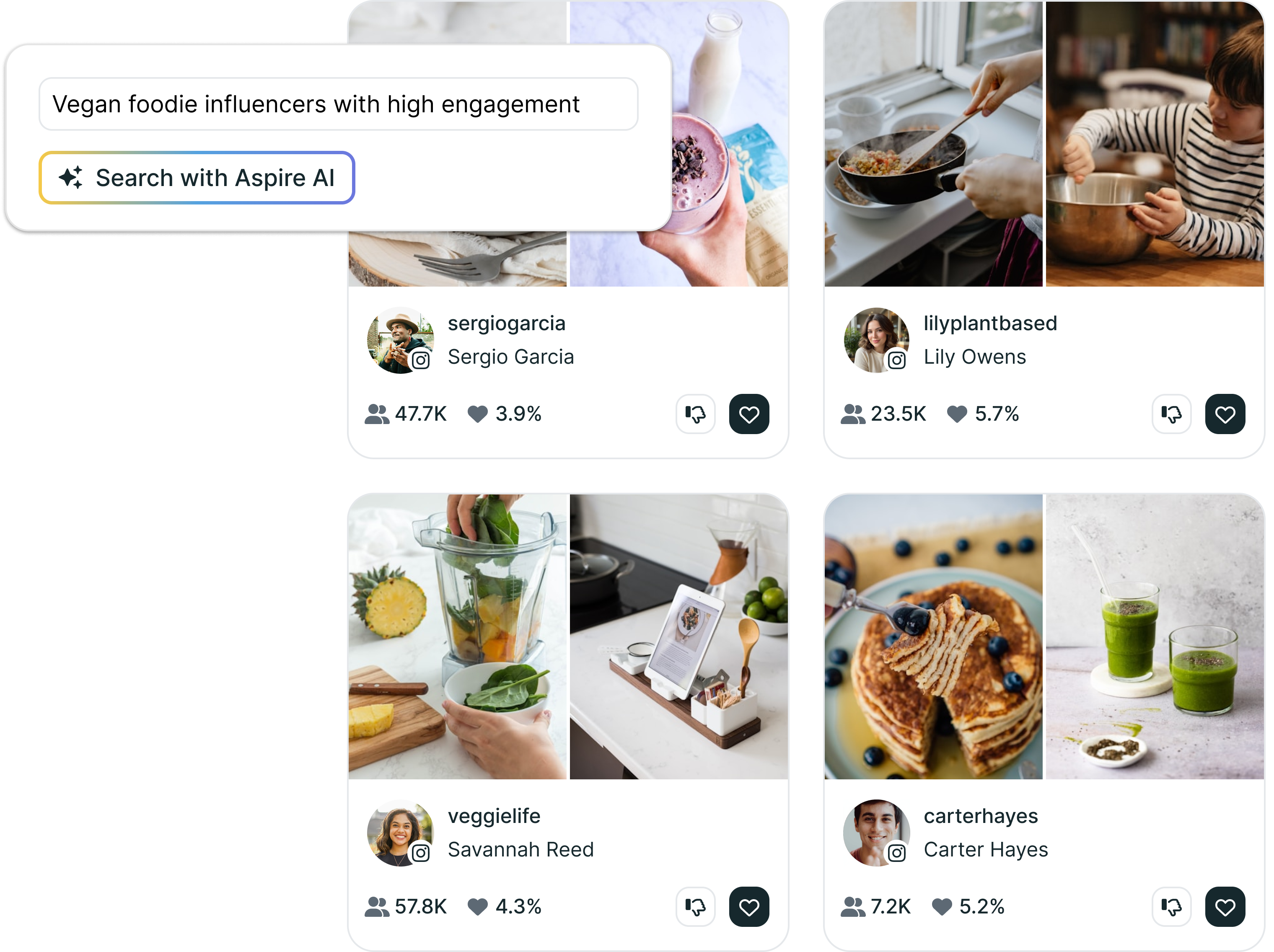 Narrow by location, follower count, engagement rate, audience demographics, content themes, and brand experience.