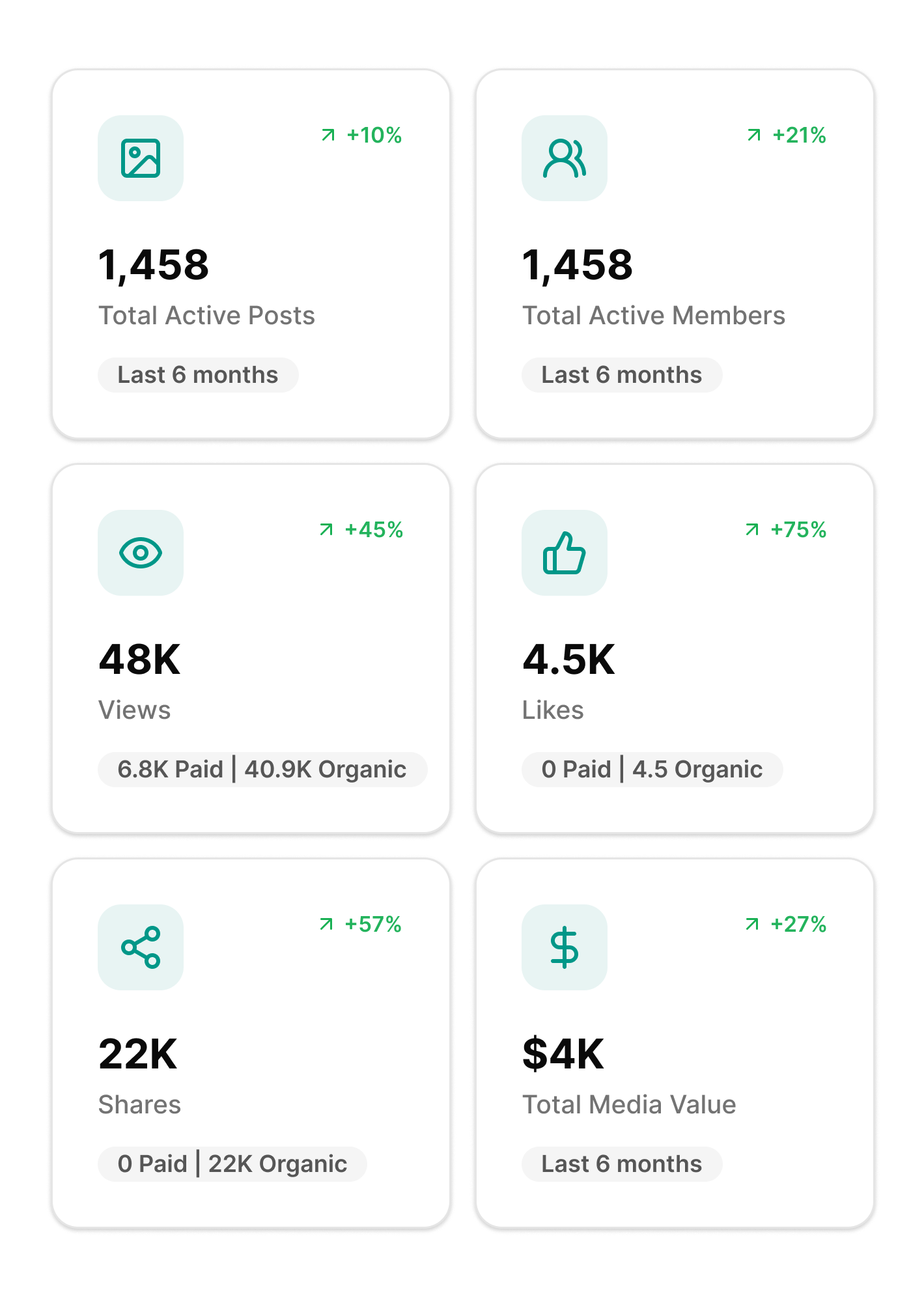 Social Dashboard pulls reach, impressions, engagement, and Total Media Value into one place, cut by post, creator, or platform, so you're not assembling a spreadsheet every time you need an answer. Trend arrows show how each metric compares to the previous period. Drill into the Posts tab to scan content as thumbnails or sort it in a table. Check the Members tab to see which creators are driving the most impact and how your roster breaks down across tiers. Pull up Networks to compare performance by platform and post type. Everything's there. Pick the tab that matches your question.