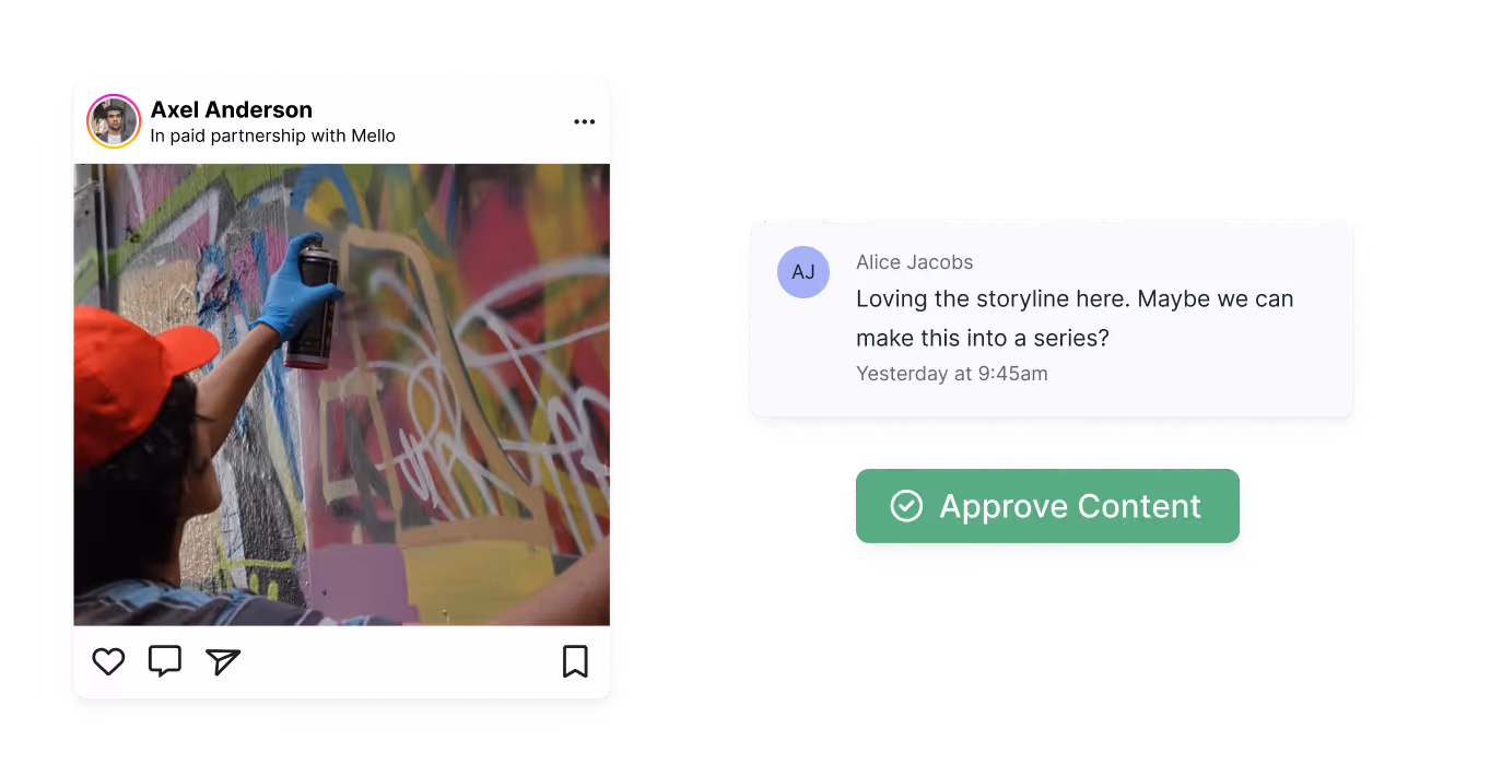 Share feedback with creators, request revisions, and approve or reject content right from Aspire.