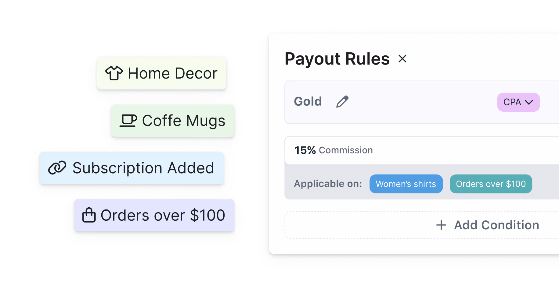 Dynamic commission structures give you more control to align payouts with campaign goals and budget efficiency.
